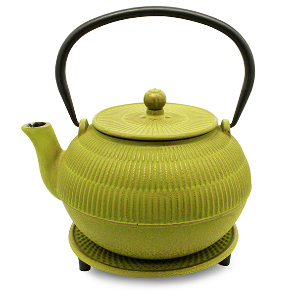 Quality Cast Iron Teapot - Acid Lime colour, 900ml (SS Mesh Strainer and Base Trivet Included).