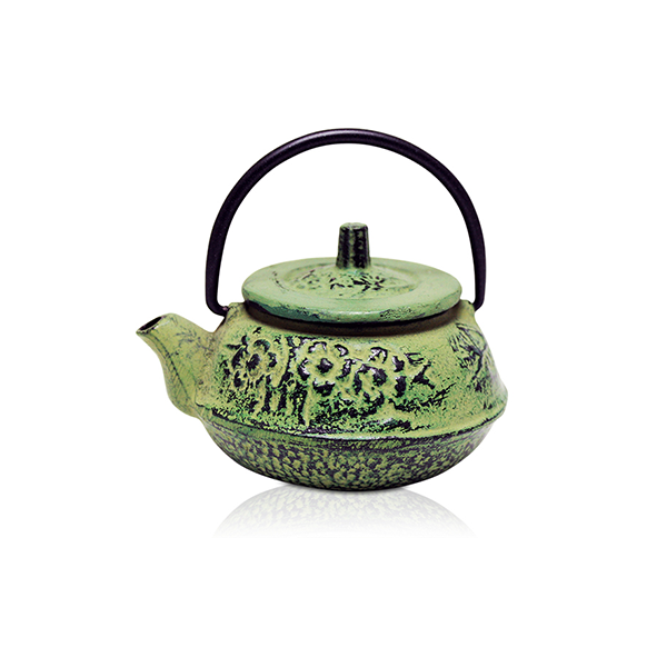 Mini Cast Iron Trinket Teapot (Cherry Blossom Design - Green). This cute mini teapot is a unique collectors trinket, or used by some for serving sauce condiments. Size: volume- 50ml, height- 6.5cm, length- 7.5cm. A unique Tea Lovers Gift!