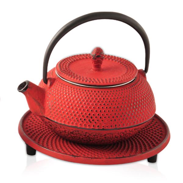 Quality Cast Iron Teapot - Moto Red 300ml (mesh strainer and trivet included).