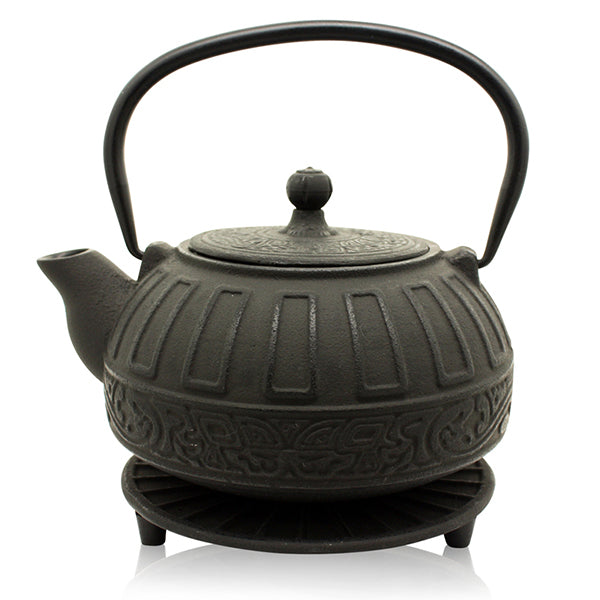 Quality Cast Iron Teapot - Reflection Matt-Black 800ml (mesh strainer and trivet included).