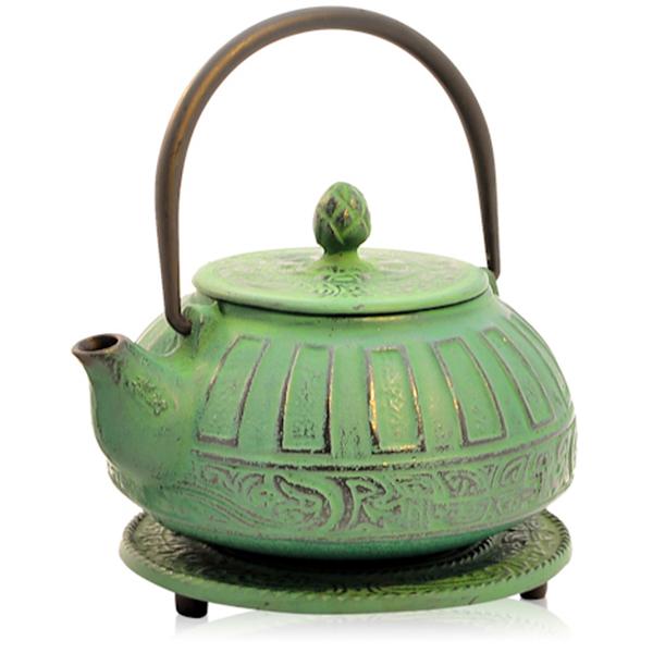 Quality Cast Iron Teapot - Reflection Green 800ml (mesh strainer and trivet included). Matching cups also available.