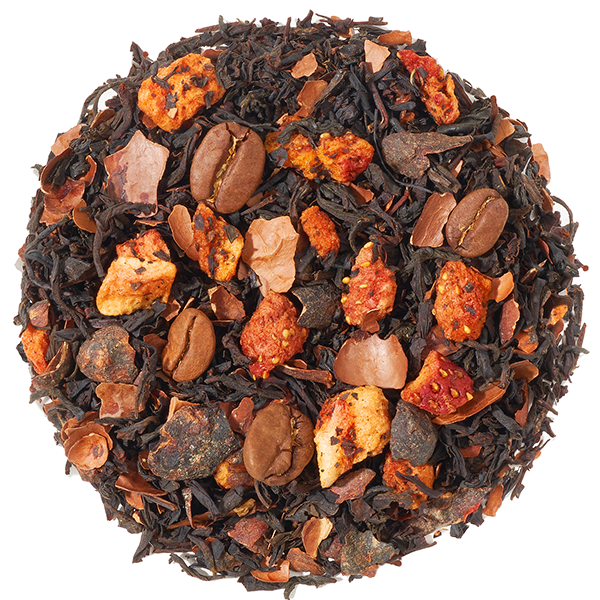 Black tea, cocoa peel, roasted coffee beans, freeze-dried strawberry pieces, natural flavour.