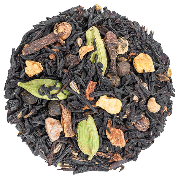 A wholesome blend of organic black tea with organic ginger and chai spices, this tea boasts a delightful cinnamon aroma and smooth, spicy flavour. Lower in caffeine and tannins compared to other black teas, it's a nutritious choice for tea lovers.