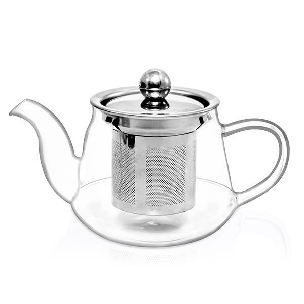 Elio Glass Teapot 400ml with Stainless Steel Strainer & Lid (SS 18/8). Quality heat resistant glass.