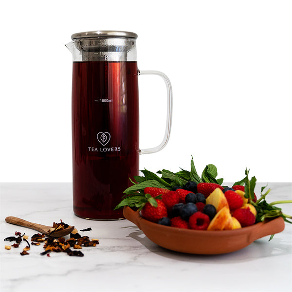 Brewing Guide: Jug contains two measuring marks 1 Litre and max 1400ml, to assist with your tea and coffee dosing. Place 7-9 teaspoons of loose leaf tea, fruit tea or herbal tea into stainless steel infuser and pour in water to 1400ml. Hot brew for 6-7 mins, remove infuser and allow to cool, store in fridge.