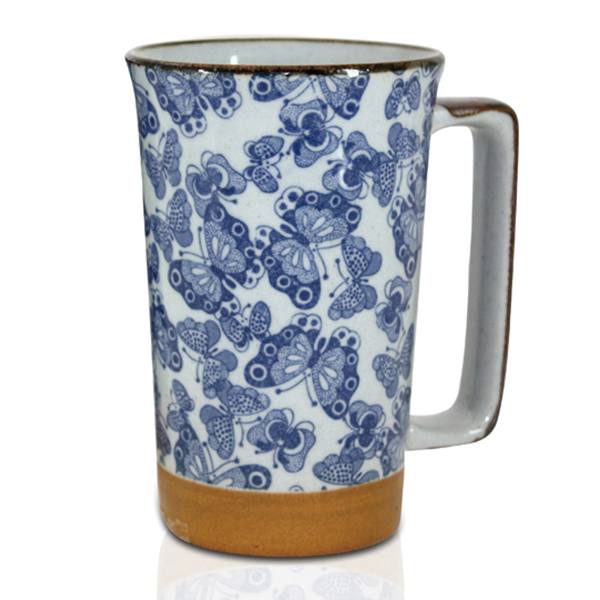 Quality Japanese Tall Mug 400ml - Butterfly Blue Design. Made in Japan.