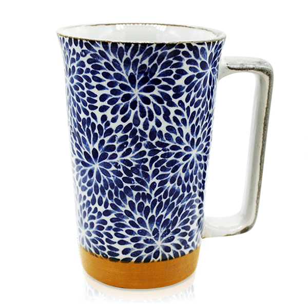 Quality Japanese Tall Mug 400ml - Chrysanthemum Flower Design. Made in Japan.