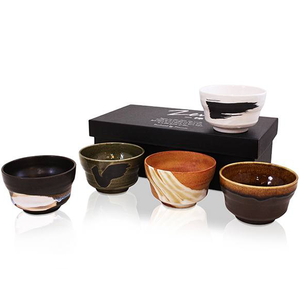 Quality Japanese 5 Tea Bowl Gift Set - Ceramic Handcrafted Tea Bowls with earthenware finish, in Japanese assorted colours. Set comes in natural brown Japan giftbox.