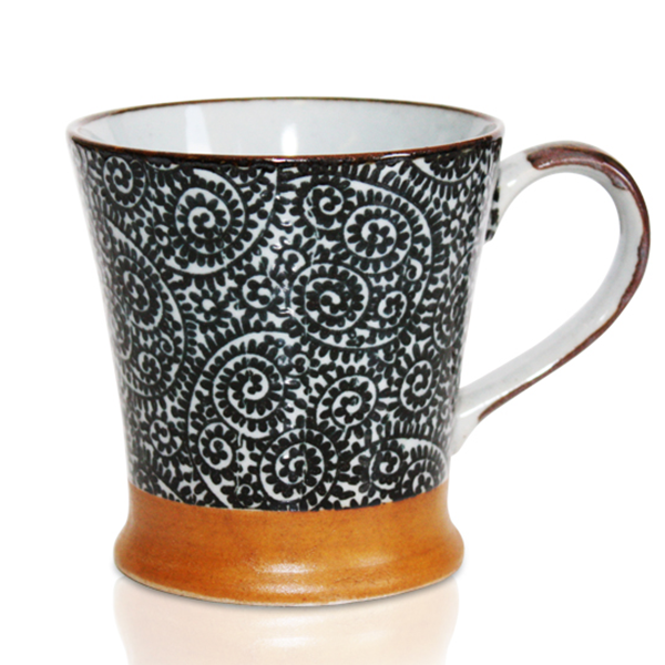 Quality Japanese Tea Mug 250ml - Spiral Black Design. Made in Japan.