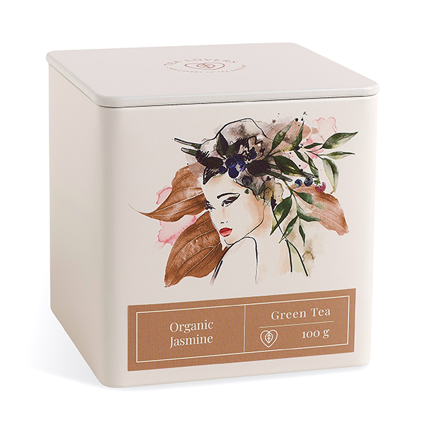 Tea Lovers 'Organic Jasmine' green tea. This 100g loose leaf tea comes elegantly presented in a charming tea gift tin.