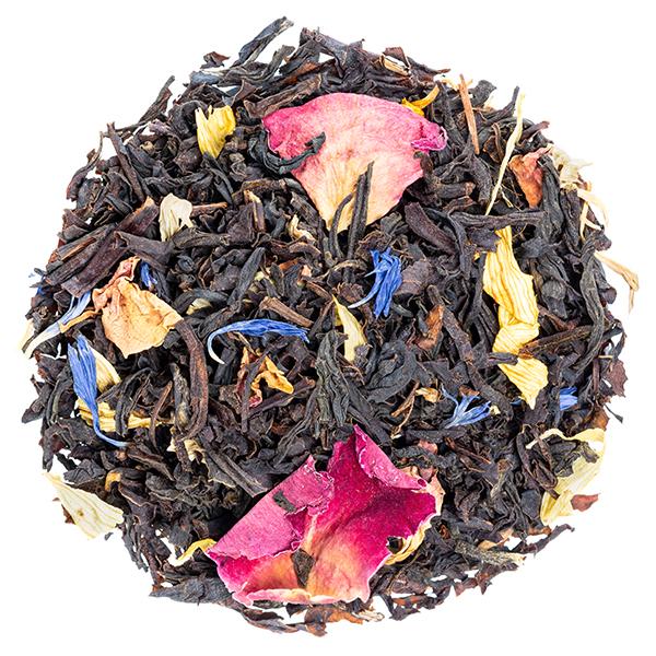French Earl Grey Black Tea: Black tea, bergamot, rose, calendula, blue cornflowers, natural flavour.