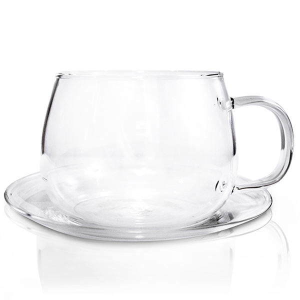 Quality Glass Tea Cup with Matching Saucer 350ml. Made from heat resistant borosilicate glass. These glass tea cup & saucers are lightweight with a stylish modern design. Perfect for serving tea or coffee.