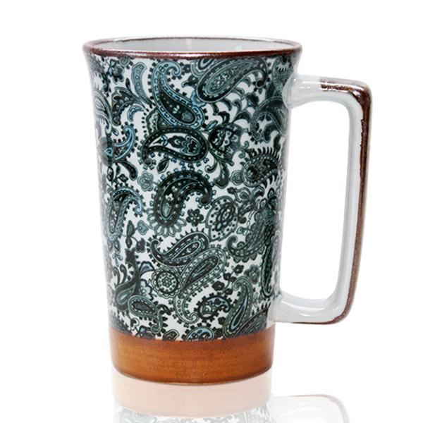 Quality Japanese Tall Mug 400ml - Paisley Black Design. Made in Japan.